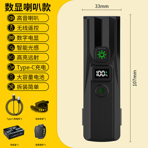 光感自行车前灯数字电显户外夜间骑行灯山地公路车夜间照明喇叭灯