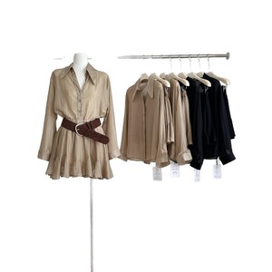 秋上新!感翻领短袖衬衫+气质百褶裙短裙套装