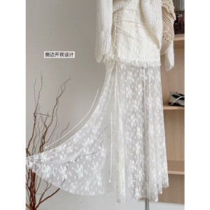 2025新款秋款 温柔风毛衣蕾丝裙设计感包臀花边鱼尾半身裙套装女
