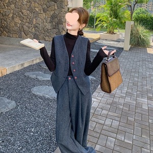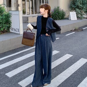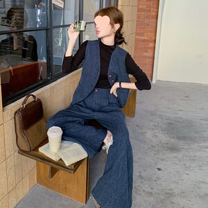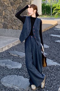慵懒风设计马甲休闲套装秋季2025新款韩系气质通勤阔腿裤两件套