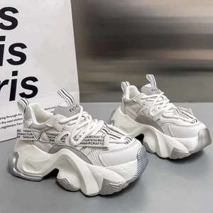 韩版网面老爹鞋女2025新款拼色增高厚底系带运动休闲透气软底潮款