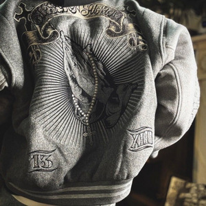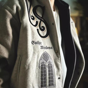 潮牌美式复古重磅刺绣夹克棒球服男关闭周日传教士宽松加厚外套冬
