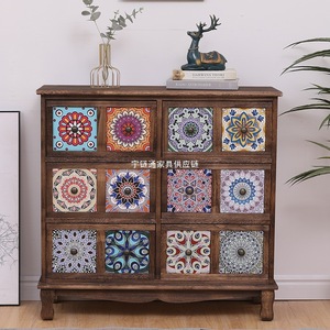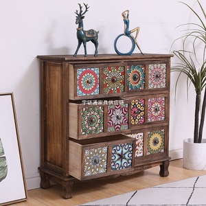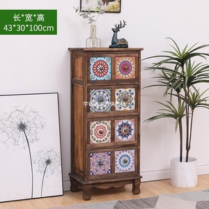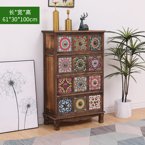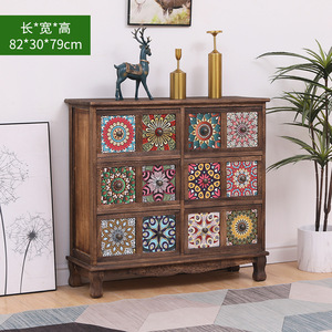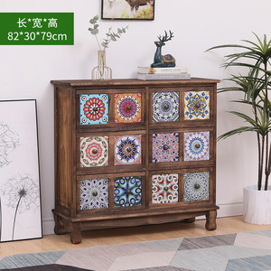 美式实木复古储物柜抽屉式收纳柜客厅多层置物柜卧室斗柜阳台柜子
