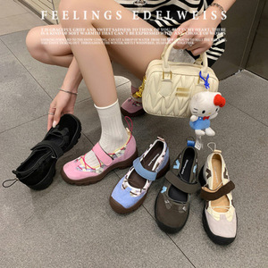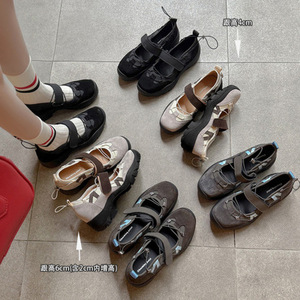 真皮魔术贴交叉细带玛丽珍鞋女机能风厚底浅口大码运动休闲鞋单鞋