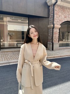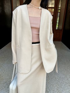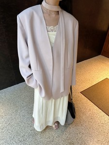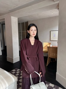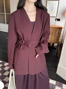 DIGM | 2025秋季极简风高级感通勤V领飘带羊毛西装外套女A32069