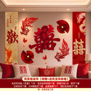 背景墙装饰【龙凤呈祥+双喜条幅】