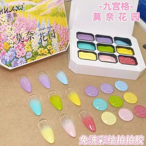 美甲九宫格莫奈花园免洗拍拍胶高饱和彩绘渐变晕染胶美甲店专用