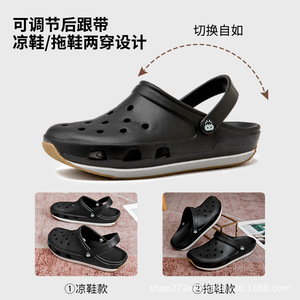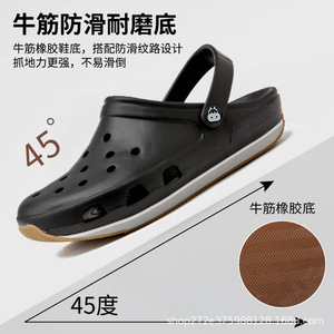 防滑牛筋软厚底洞洞鞋女夏季情侣外穿防臭透气包头海边沙滩凉拖鞋