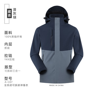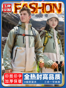 全热封三合一冲锋衣可拆卸防风防雨工作服登山服外套定制绣印logo