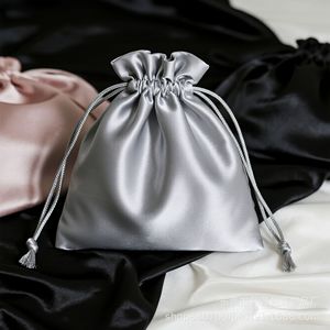 高级感色丁布束口袋银灰色 丝绸缎面收纳袋印logo 饰品抽绳袋光滑