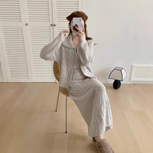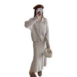 2025年秋冬慵懒松弛感穿搭高级感麻花休闲毛衣套装直筒半裙两件套