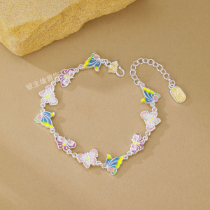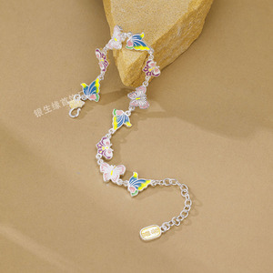 描金珐琅彩色蝴蝶花宫廷风手链国风直播爆款高颜值气质蝴蝶手链