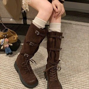 纯欲辣妹~25秋冬腿型救星可调节大筒围高筒骑士靴女复古绑带长靴