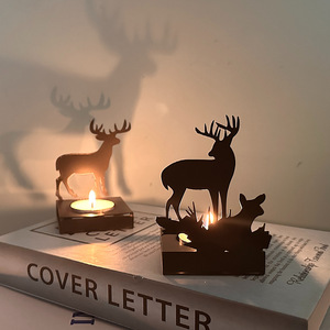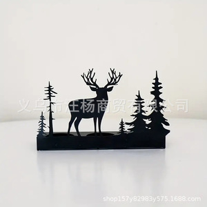 跨境创意家居发光装饰桌面圣诞节树金属铁艺麋鹿茶蜡烛台灯架摆件