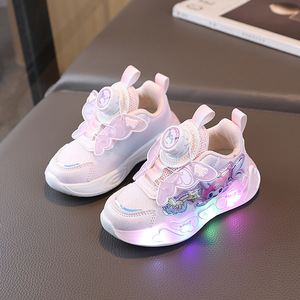 童鞋女童2025新款春季儿童网面运动鞋中大童女孩爱莎公主老爹鞋子