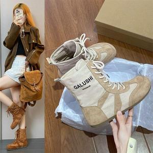 马丁靴女2025新款休闲帆布短靴户外登山鞋朋克风工装机车靴