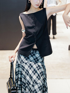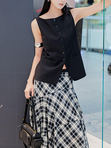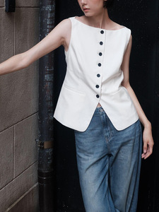 MC马甲25秋冬弹丝绵高腰收腰上衣修身显瘦无袖西装马甲MBE3TOP027