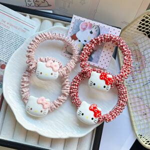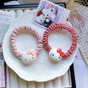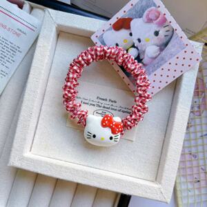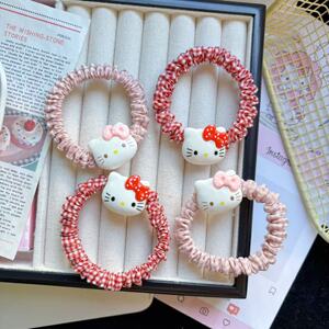 可爱KT格子发圈少女ins布艺头绳百搭扎马尾网红发绳卡通学生发饰
