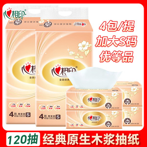 心相印经典120抽4包一提金装餐纸巾三层可湿水家用卫生抽纸