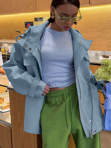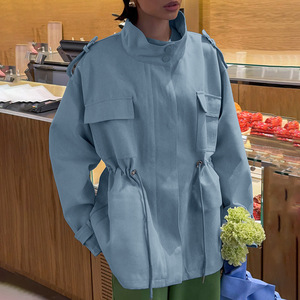秋冬新款纯棉高领收腰抽绳长袖外套女设计感气质时尚2025跨境通勤