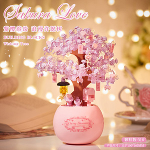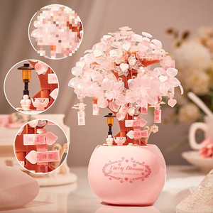 永生花束积木拼装盆栽樱花树拼图柿柿如意摆件手工母亲节