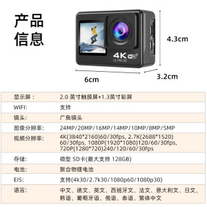 新款运动相机4K高清双屏带触摸摄像机户外运动防抖防水专用记录仪
