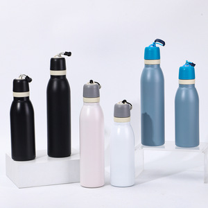 跨境马卡龙色小口瓶304不锈钢真空保温杯户外带提绳随行运动水杯