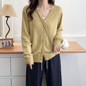 【特】200斤胖妹妹早秋新款纯色软糯V领针织开衫大码休闲上衣7856