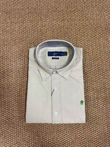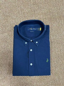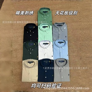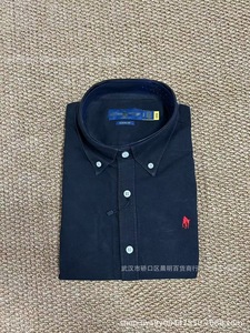rl跨境货源纯色小马Logo刺绣牛津商务休闲长袖衬衫牛津翻领排扣