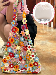 手工编织包包钩针diy材料包毛线自制针织花朵单肩包打发时间礼物