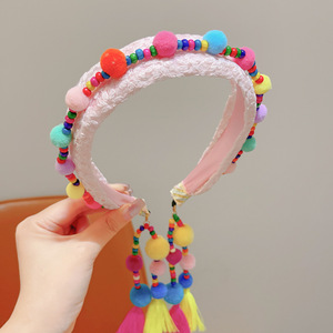儿童复古流行压发头箍发带女童民族风发饰2025新款毛球流苏发箍女