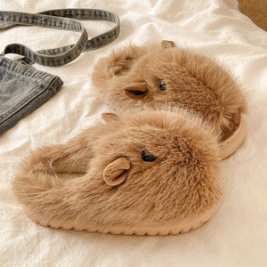毛毛拖鞋女冬季2025新款居家外穿保暖防滑包头毛绒可爱水豚棉拖鞋