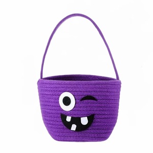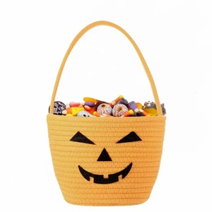 万圣节系列收纳篮手工编织零食糖果收纳筐可手提玩具储物篮棉绳篮