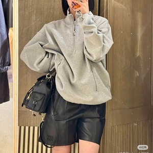 25秋冬新款刺绣徽标半拉链卫衣男女同款情侣长袖休闲运动立领上衣