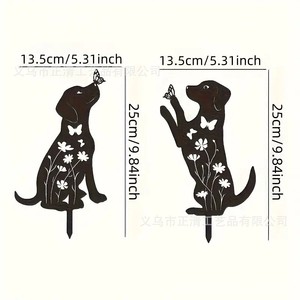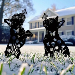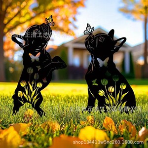 跨境temu爆款金属小狗花园雕像装饰地插法国斗牛犬金属花园装饰品