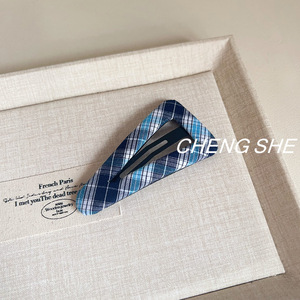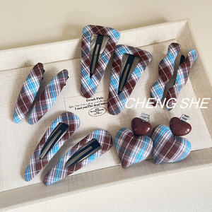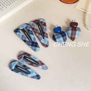 2025新款蓝咖格纹几何发夹爱心格子甜美百搭学院风刘海夹头饰发饰
