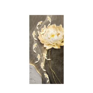 轻奢九鱼图入户玄关装饰画寓意好荷花走廊过道挂画客厅发光壁画灯