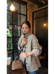 “巴顿风衣”立领设计 袖口拼格纹风格感十足秋日风衣外套