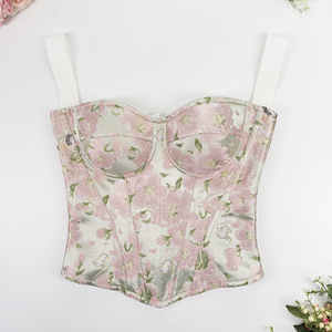 新中式提花浮雕桃花抹胸上衣紧身掐腰显瘦折角腰收腹宫廷塑身胸衣