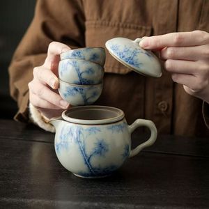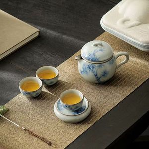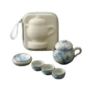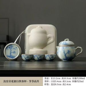 汝窑青花节节高升瓷旅行茶具套装便携式快客杯户外露营泡茶壶