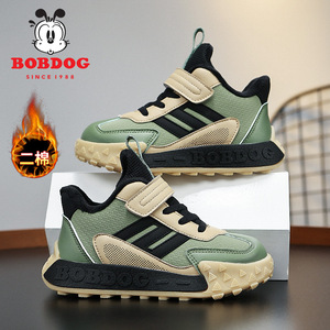 巴布豆童鞋男童鞋子2025秋冬皮面新款中大童儿童运动鞋男孩老爹鞋