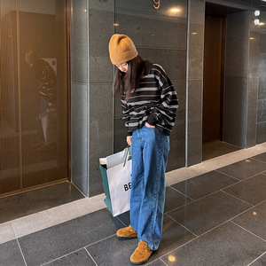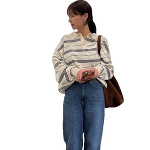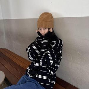 韩国chic 2025秋季新款韩版BF风宽松条纹针织长袖polo衫女上衣
