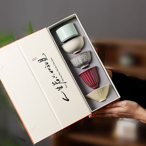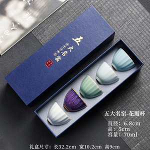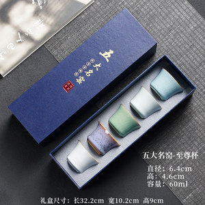 仿宋五大名窑主人杯套装文创礼盒陶瓷功夫茶杯精致品茗杯礼品