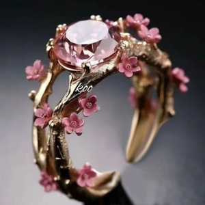 玫瑰金蝴蝶花朵开口戒指