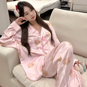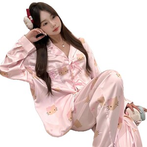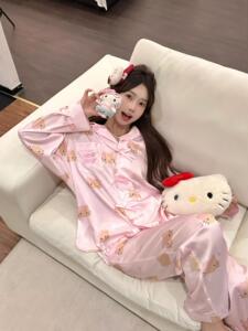 甜美凯蒂猫2025夏季新款长袖长裤睡衣女粉色可爱少女感家居服套装