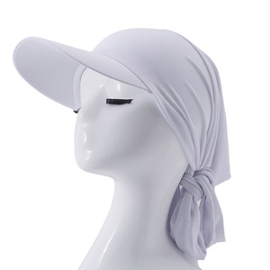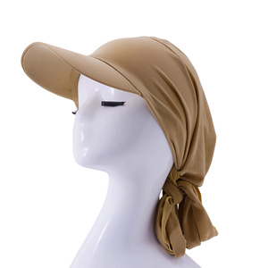 加长版民族帽檐女士头巾遮阳帽褶皱绑带长尾棒球帽穆斯林包头帽子