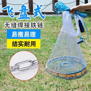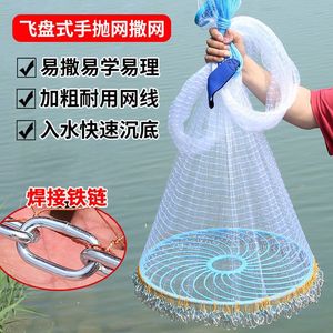 大飞盘式抛网撒网钢丝加粗拉线新款铁链圆盘粗线鱼网自动渔网批发