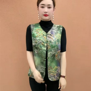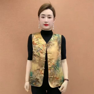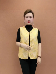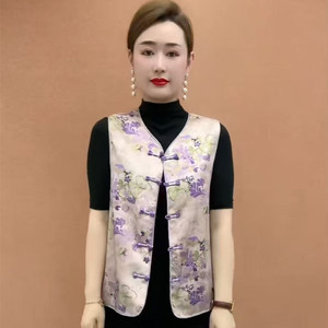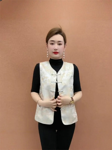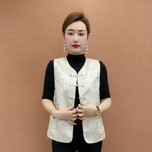 新款新中式国风马甲女盘扣高级背心唐装坎肩背心春季刺绣提花上衣