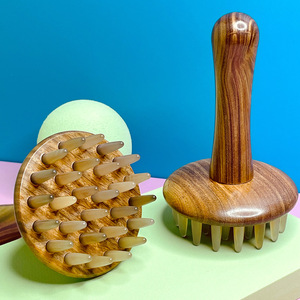 檀木插齿头疗小蛮腰经络按摩梳女士全身疏通带脉刷按摩头部按摩梳