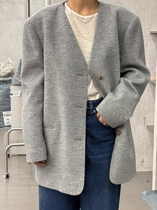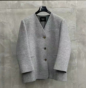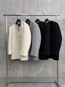 现h韩国东大门同款24年秋冬mute高级简约宽松气质V领毛呢外套大衣